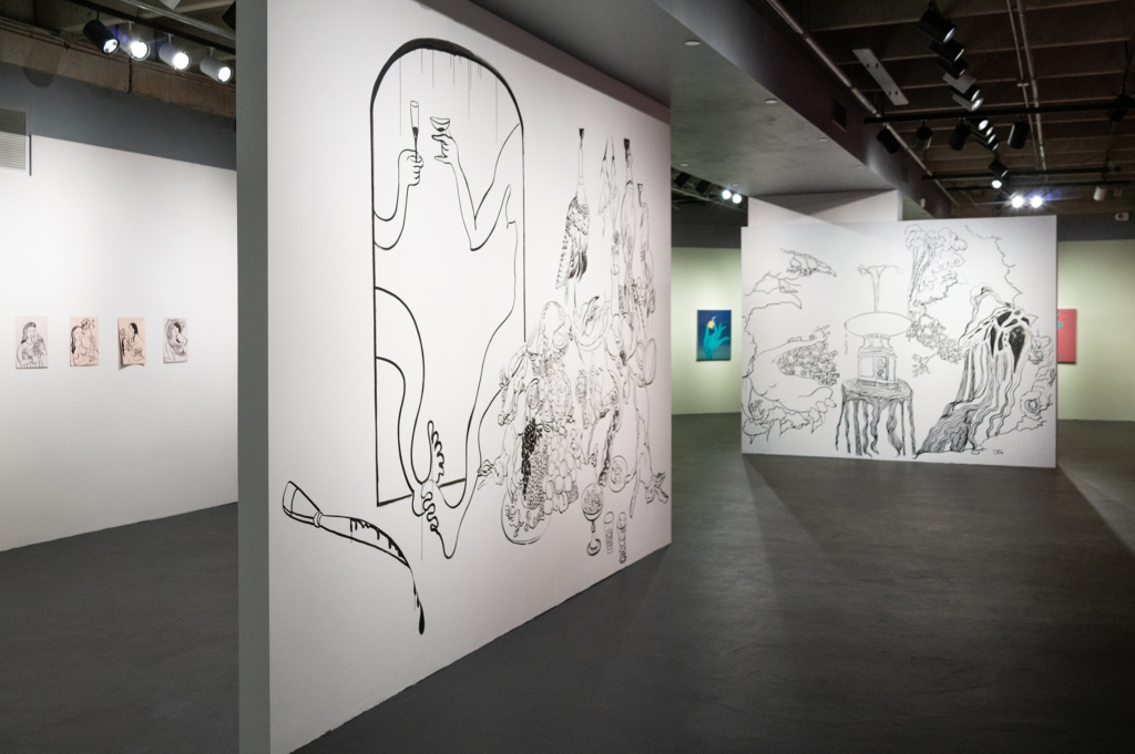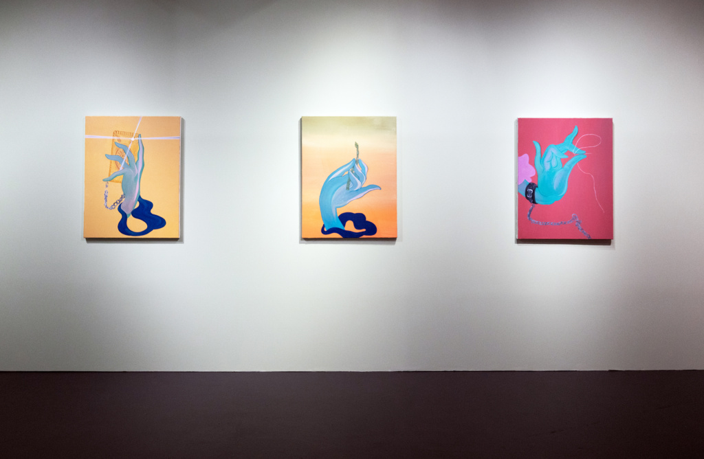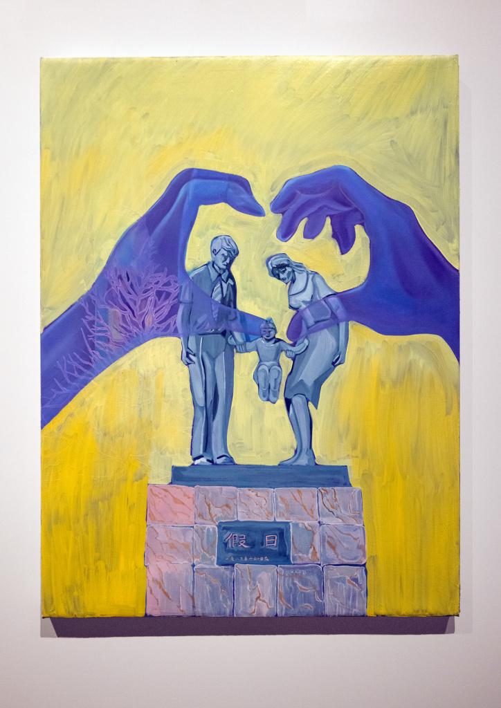 Qin’s works frequently include figures which against backdrops of obscure interiors. While she develops each work instinctively, without knowing the finished result, each painting has a strong sense of narrative. She deliberately build an antagonistic narration by mixing elements from her fantasies with features from a more commonplace, mundane world.