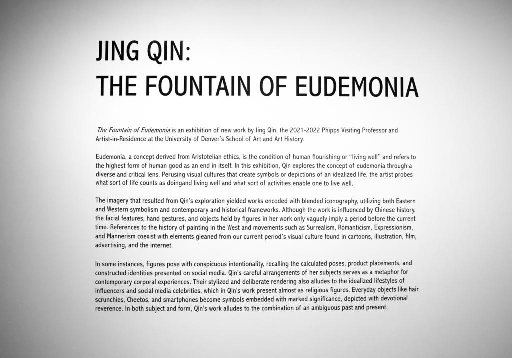 The Fountain of Eudemonia is an exhibition of new work by Jing Qin, the 2021-2022 Phipps Visiting Professor and Artist-in-Residence at the University of Denver’s School of Art and Art History.