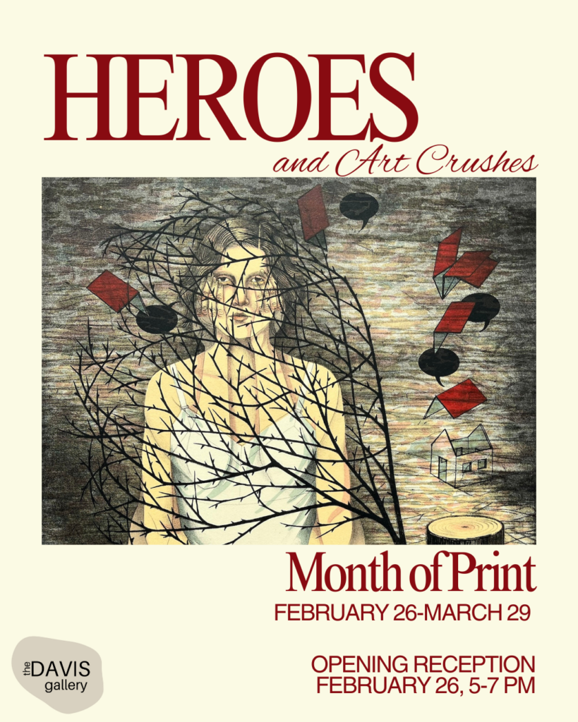 Join the Davis Gallery on Thursday, February 26 to celebrate the opening of the exhibiton “Heroes and Art Crushes” as part of Month of Printmaking!