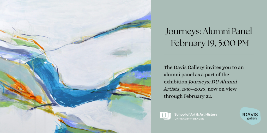 As a part of Journeys: DU Alumni Artists, 1987-2025, the Davis Gallery is pleased to present a panel of alumni artists featured in the exhibition.