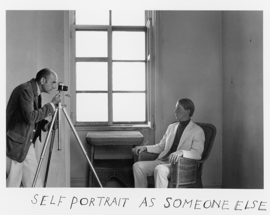 Duane Michals, Self-Portrait As Someone Else (1973), silver gelatin print with hand-applied text.